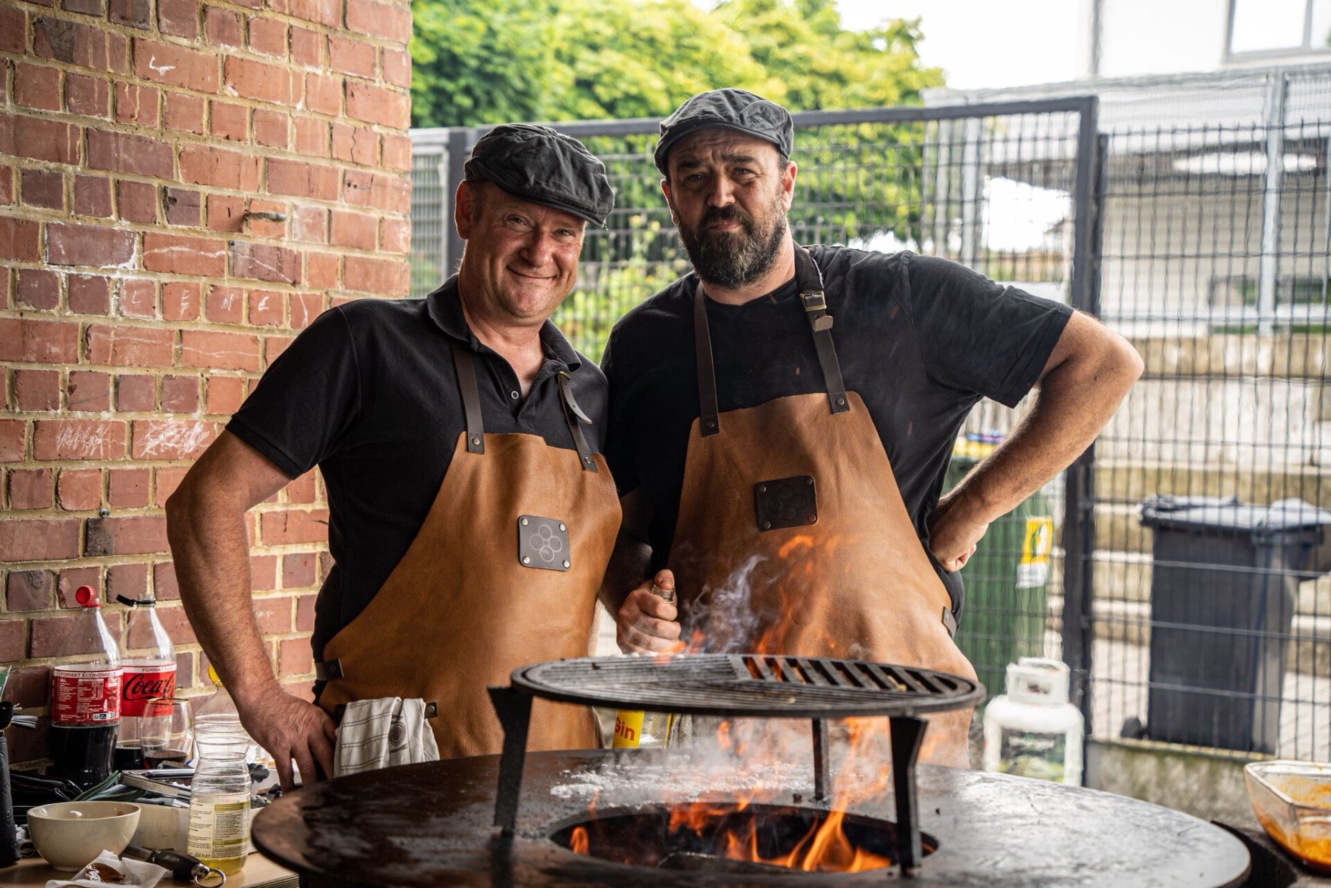 Koken op open vuur: een unieke beleving waar smaak, show en gezelligheid samenkomen. Perfect voor tuinfeesten, trouwfeesten, communies en bedrijfsevents.